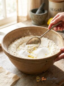 - Mélanger la farine avec le sucre et la levure.